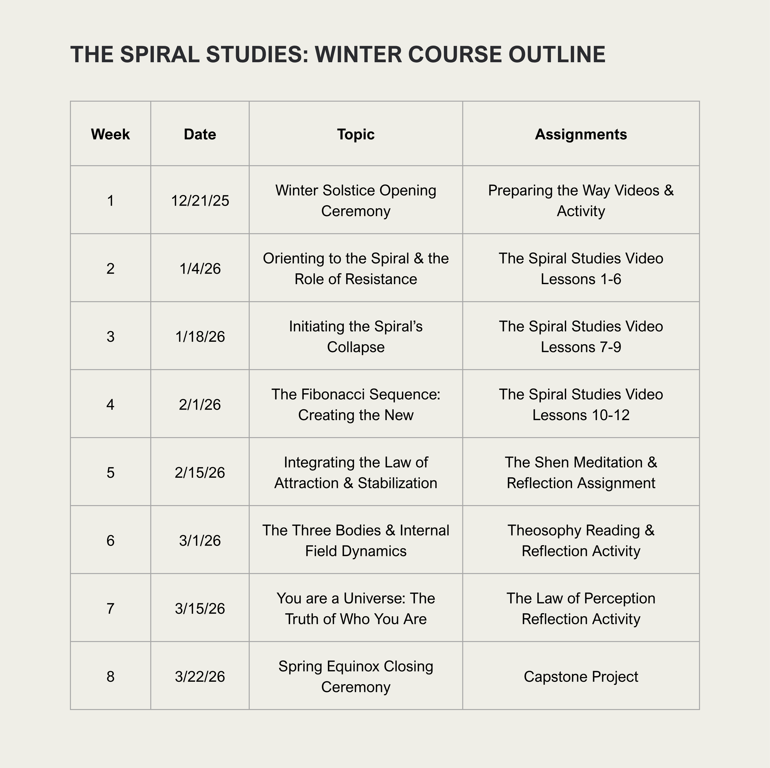The Spiral Studies is a 13-week immersive program designed to guide you through the metaphysical and psychological dynamics of the Spiral: an ancient, Hermetic pattern of transformation.